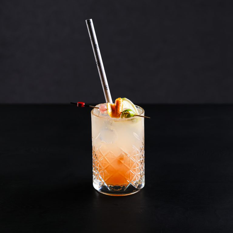 Un mélange rafraîchissant et fruité à base de purée de fraise, jus de citron jaune et jus d’ananas.