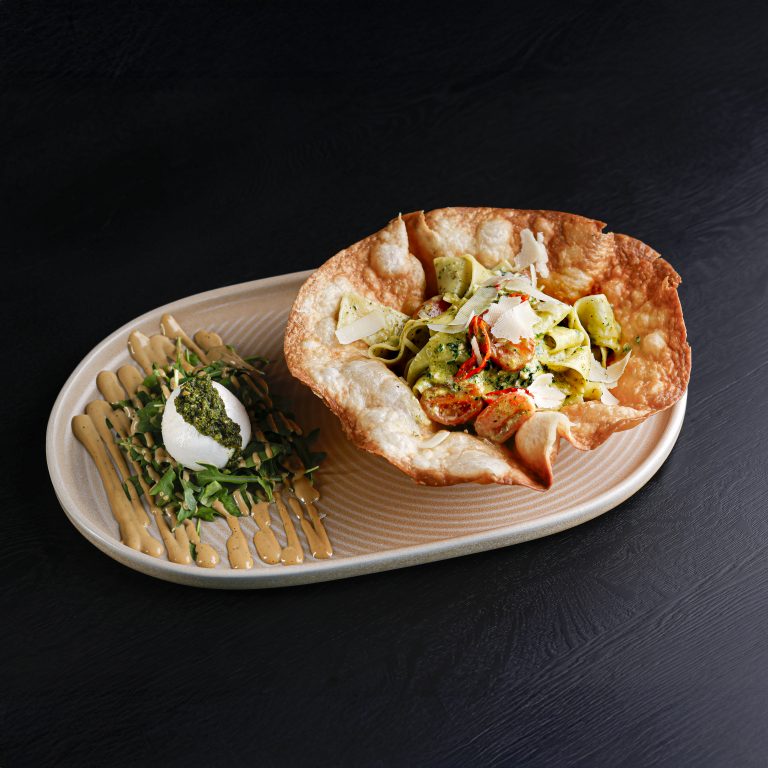 Pâtes crémeuses avec lardons, œuf et parmesan.